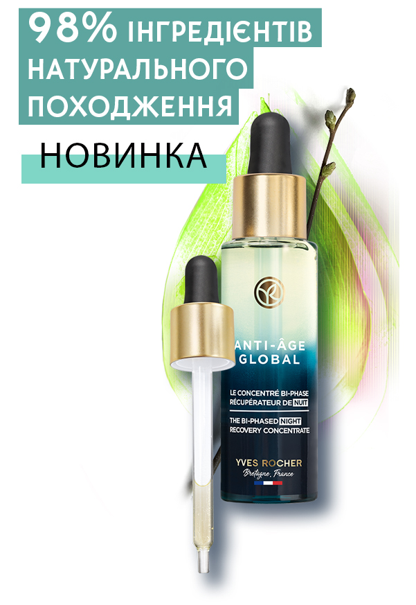 Двофазний Нічний Відновлювальний Концентрат Анти-Аж Глобаль, створений для застосування у нічний час, активізує оновлення клітин в глибоких шарах шкіри лише за 72 години і допомагає налагодити міжклітинні зв'язки для відновлення їхніх природних функцій*.