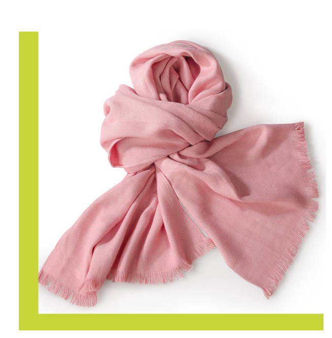 Ніжний пудровий колір шарфа освіжає і пасує всім без винятку.