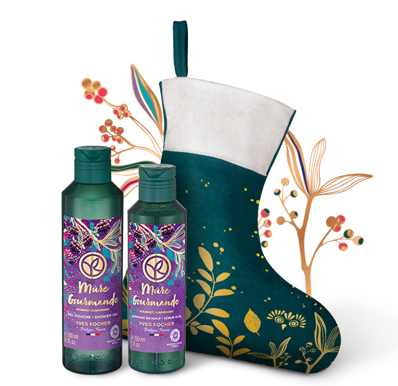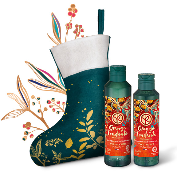 Гель для душу та Скраб-Олія для Тіла разом зі святковою шкарпеткою, що стане у нагоді як оригінальний аксесуар для пакування подарунків або декорування оселі.