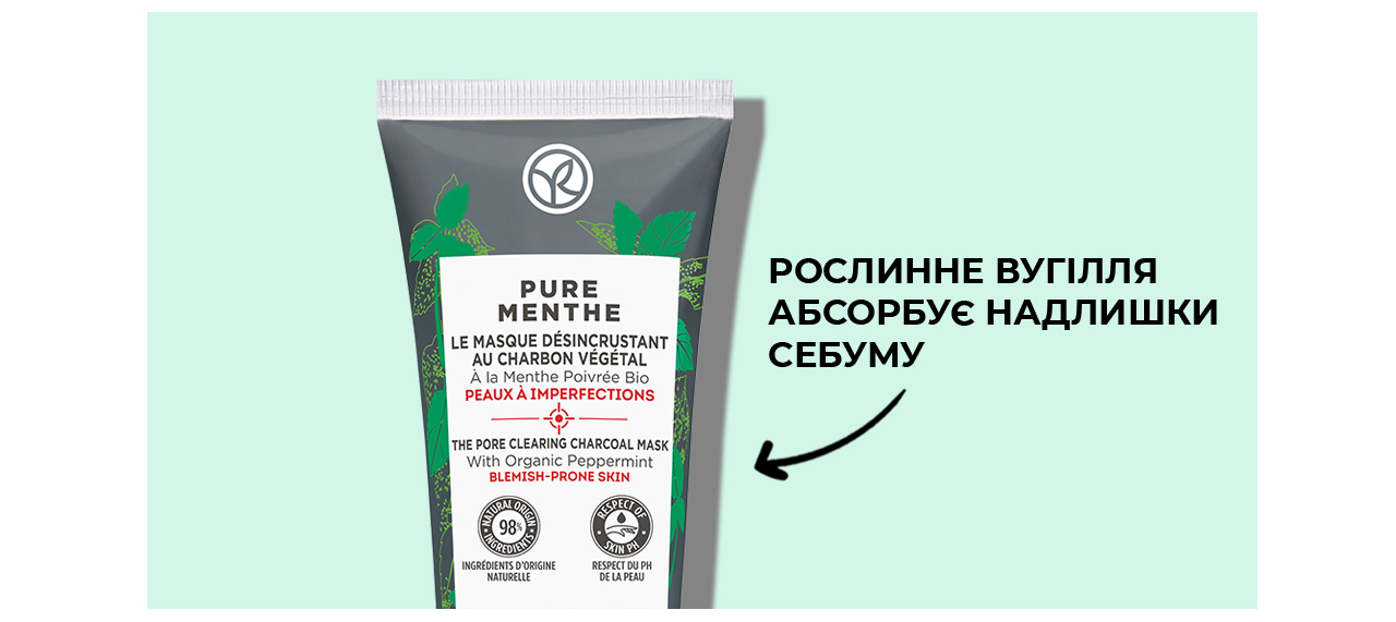 Маска з Рослинним Вугіллям на основі М'яти усуває забруднення, розблоковує пори та видаляє чорні цятки, вирівнює тон шкіри та надає сяяння.