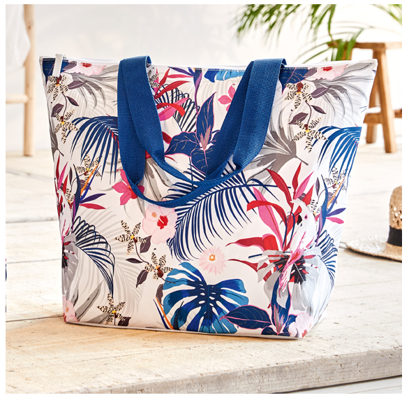 Велика та зручна пляжна на двох ручках, з яскравим тропічним візерунком.