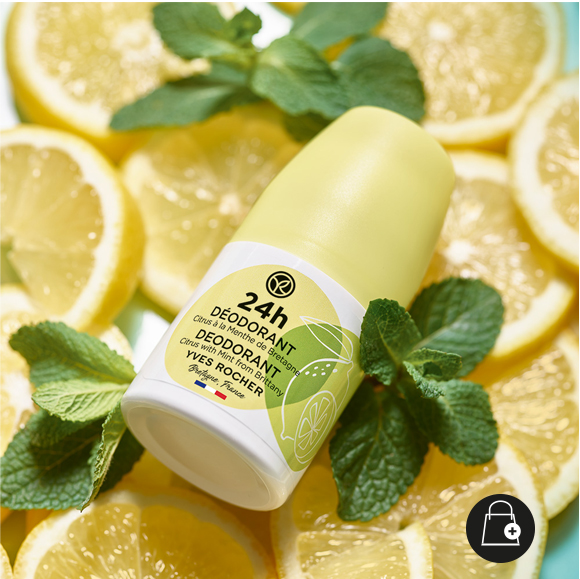 Веганська формула дезодоранту містить екстракт лимону та м’яти Біо з Бретані.