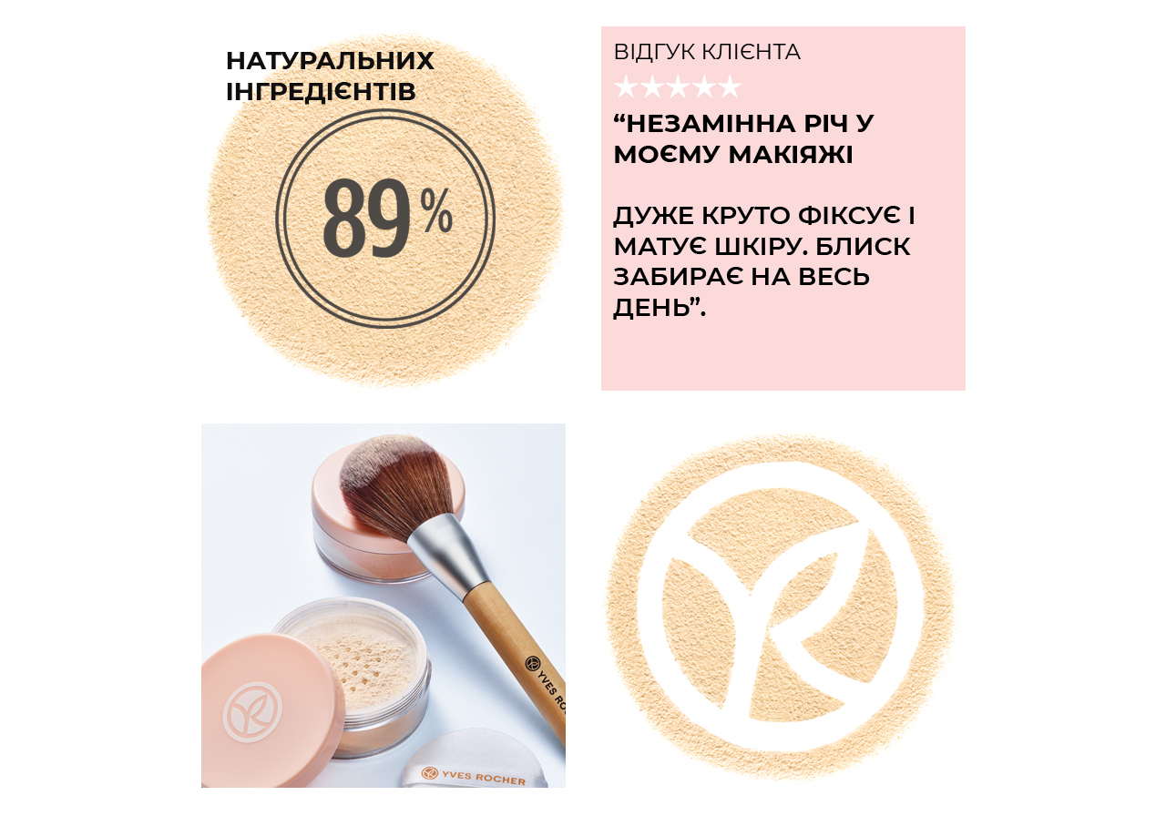 Розсипчаста Пудра - це завершуючий етап Вашого щоденного макіяжу. Вона має ультралегку текстуру, миттєво візуально розгладжує шкіру, фіксує макіяж і подовжує його стійкість, надає матового й оксамитового вигляду. Універсальний відтінок невидимий на шкірі та підходить до будь-якого тону обличчя.