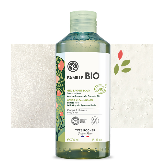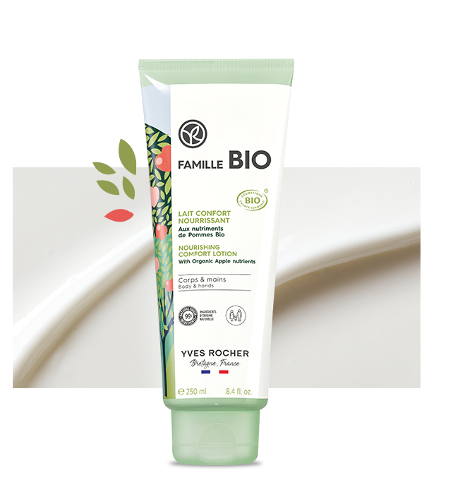 Перша сертифікована гама органічного догляду для всієї родини, включаючи дітей від 3х років. Збагачені корисними властивостями органічних яблук, вирощених у Бретані, Франція, засоби Famille Bio забезпечують живлення, зволоження і захист для всіх типів шкіри.