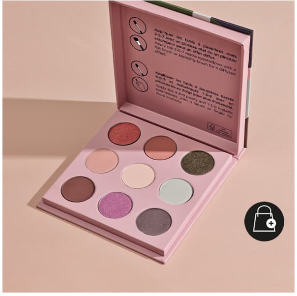 Палетка Простори Бретані з 9 пігментованими тінями для повік у відтінках від спокійного ніжно-рожевого й весняного фіалкового до акцентного хакі та глибокого коричневого відтінків з матовим, перламутровим та металевим фінішем.