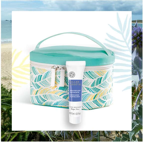 До подарункового набору входить Косметичка на блискавці 20 х 15 х 12,5 см та Сироватка-Концентрат від Зморщок та для Пружності Шкіри Filler Vegetal (тюбик 15 мл). У складі цього догляду Мезембріантемум Кришталевий, що стимулює природне вироблення гіалуронової кислоти, яка сприяє ідеальному зволоженню шкіри та діє як природний філлер.