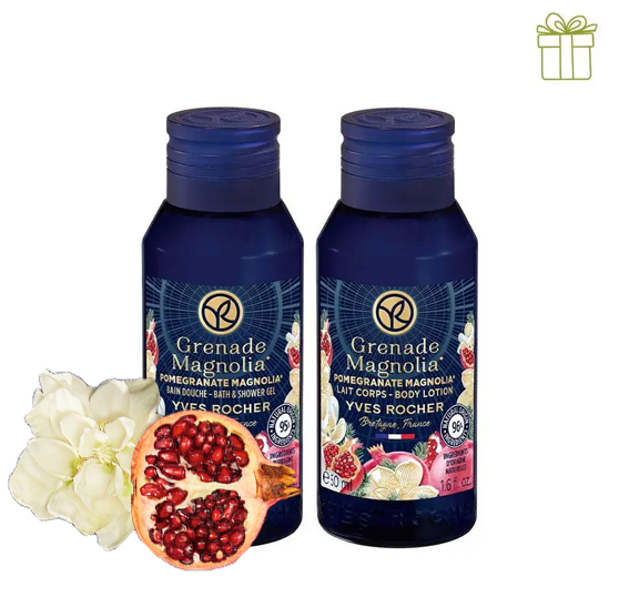 Дует мініпродуктів Гранат-Магнолія: гель для душу, молочко для тіла (50 мл).