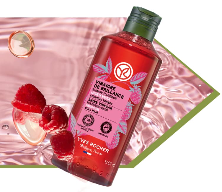 Малиновий оцет для ополіскування волосся дбає про сяяння та шовковистість волосся. Нейтралізує вапняний наліт, Результат – більш інтенсивний блиск, яскравий колір.